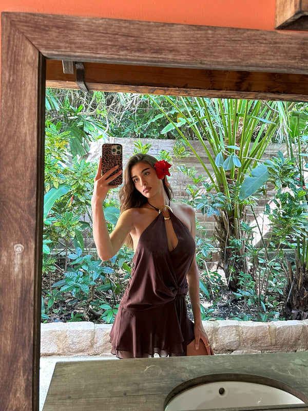 The Midnight Indigo Mini is made to steal the spotlight — a halter mini crafted with a crossover front and self-tie waist for a flattering, adjustable fit. Flowy skirt details bring soft movement. It’s the kind of dress you slip into when you’re ready to make an entrance!