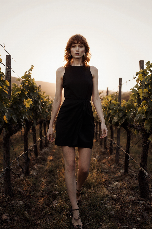 The Santorini Noir Romper is designed to embody effortless elegance — crafted in premium non-stretch fabric with a flattering crew neckline and feminine tie-back detail that enhances your silhouette. The built-in shorts and back zip closure create a polished, seamless fit, while the sleeveless design keeps you cool and sophisticated. It's the kind of piece that elevates any occasion; perfect for coastal adventures, sunset dinners, and making every moment feel effortlessly chic.