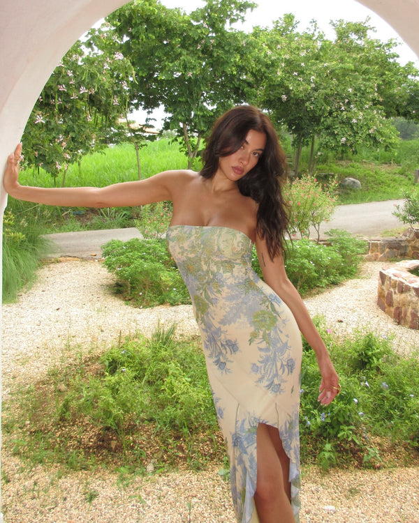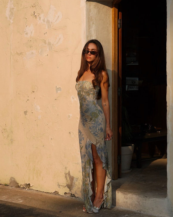 The Theo Maxi is designed to flow with you — crafted from soft mesh and finished with playful frills and a thigh-high slit for effortless movement. It’s the kind of dress made for twirling, dancing, and turning heads all season long.